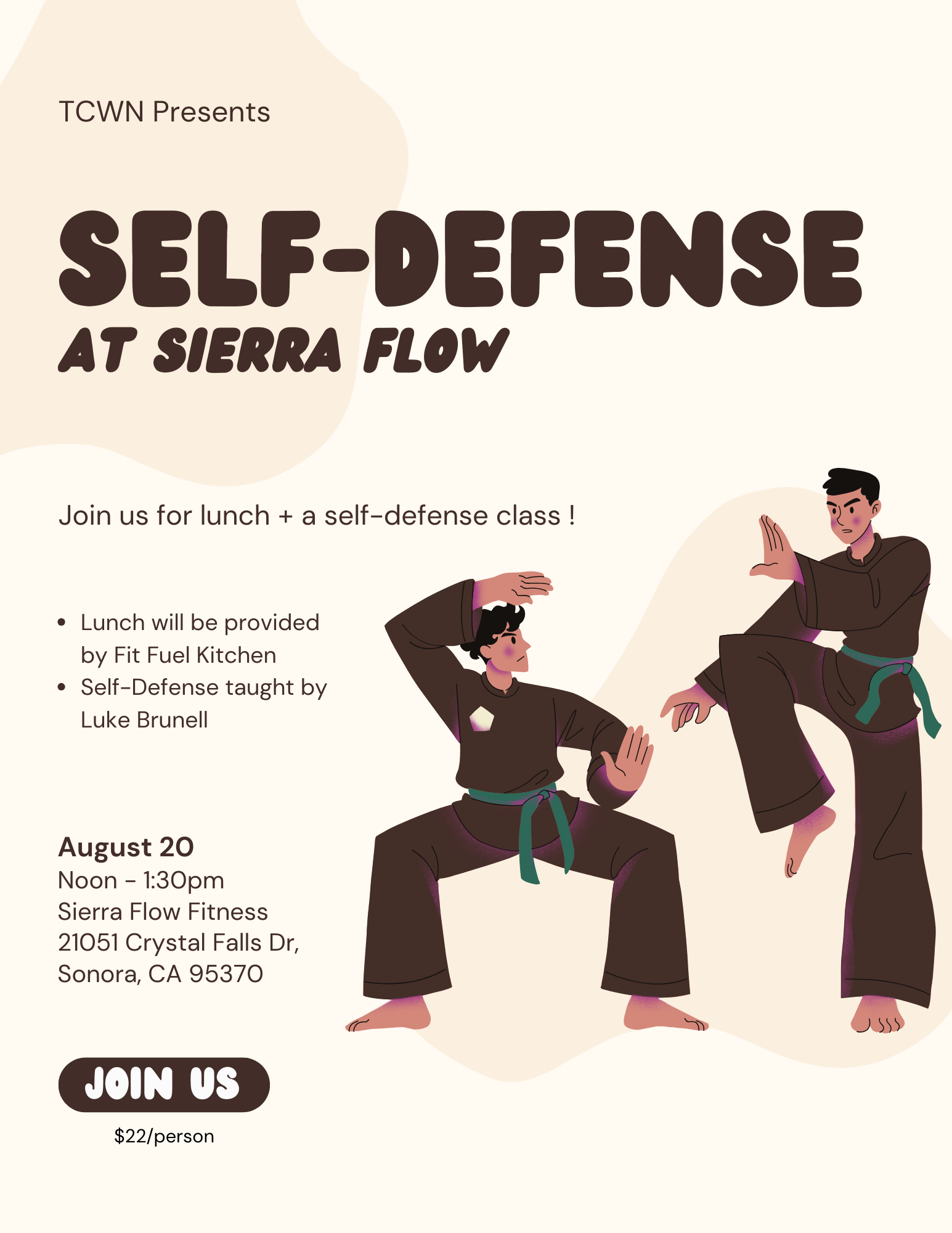 We will have lunch + self-defense class from Luke Brunell.